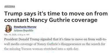 Why in the FUCK would a sitting U.S. President who has openly attacked Savannah Guthie tell America, "It's time to move on from constant Nancy Guthrie coverage?"
